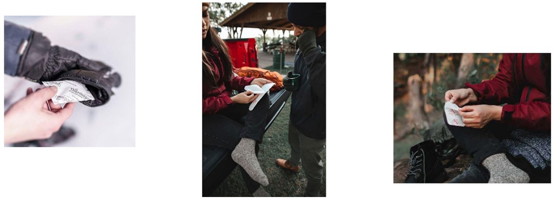 - Розміщення грілки. Розташуйте грілку під одягом біля тіла, у кишенях чи рукавицях. Дотримуйтесь інструкцій виробника щодо точного місця розташування, щоб не отримати опіки.